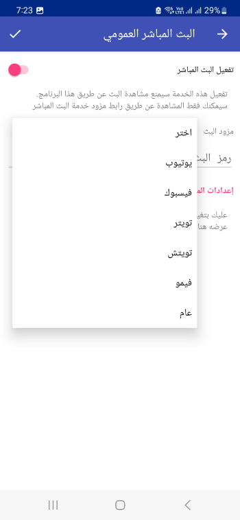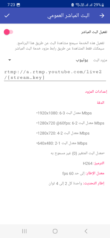 -> تخزين البث المباشر على الهاتف وتخزينه في مجلد Download ويمكن تغيير موضع الصورة في إعدادات البرنامج وسيأتي
